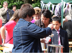 Nach einem wolkigen Morgen kam die Sonne raus und animierte zahlreiche Besucher zum Mittagessen in den Pfarrgarten zu kommen.